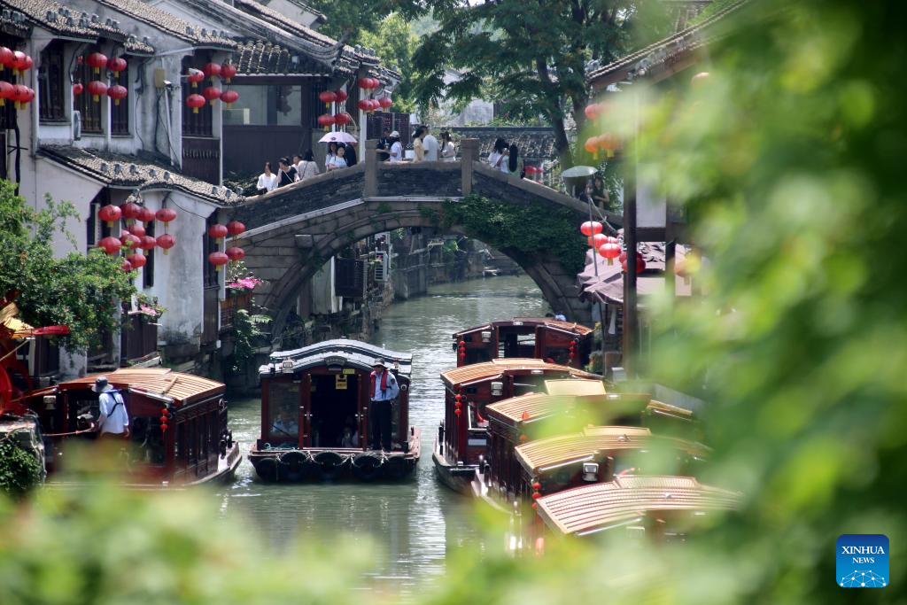 Tourists visit a scenic area in Suzhou, east China's Jiangsu Province, May 19, 2025. This year's May 19 marks the 15th China Tourism Day. (Photo by Wang Jiankang/Xinhua)