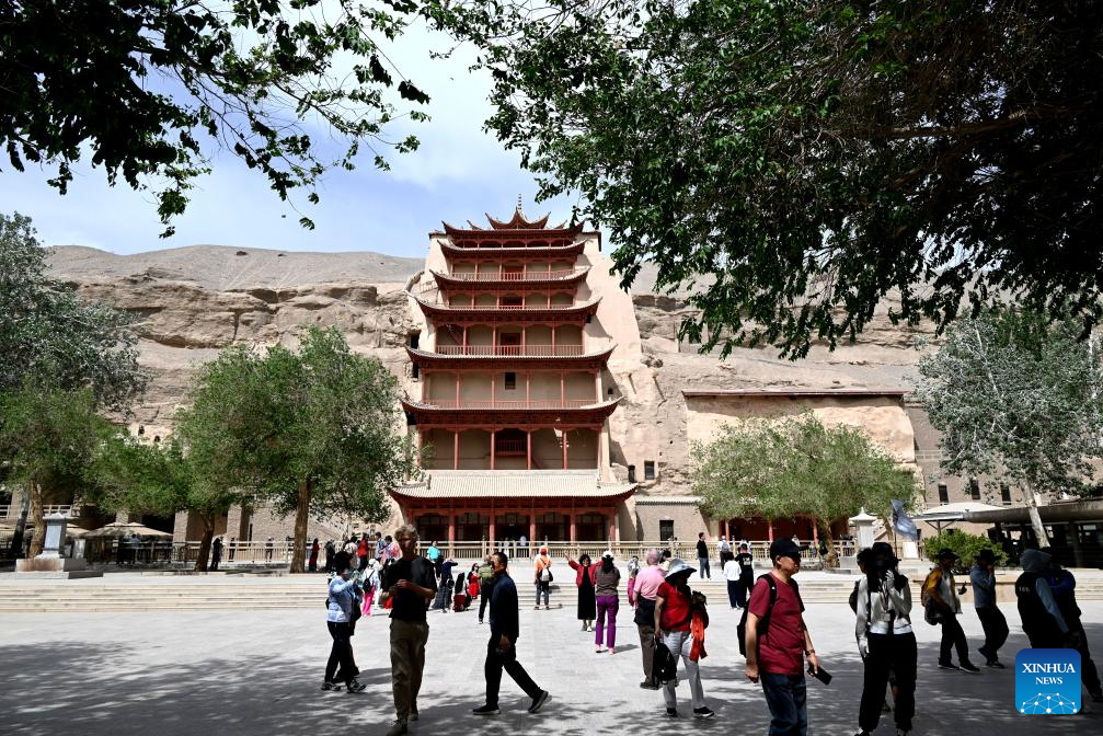 Tourists visit Mogao Grottoes in Dunhuang, northwest China's Gansu Province, May 19, 2025. This year's May 19 marks the 15th China Tourism Day. (Photo by Zhang Xiaoliang/Xinhua)