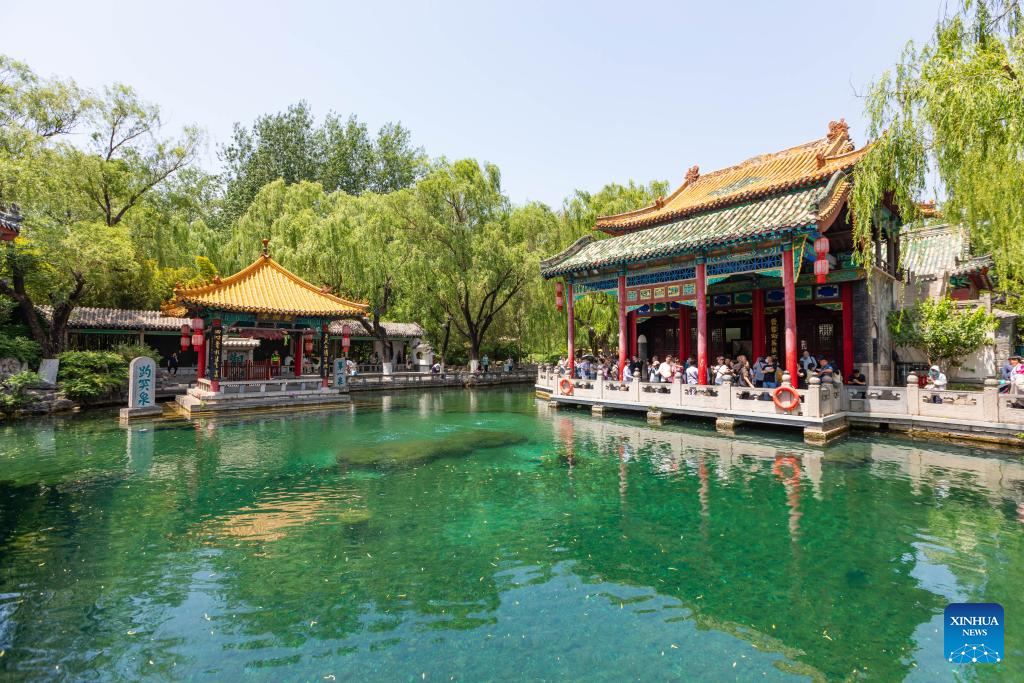 People visit the Baotu Spring in Jinan, east China's Shandong Province, May 19, 2025. This year's May 19 marks the 15th China Tourism Day. (Photo by Xu Zhou/Xinhua)