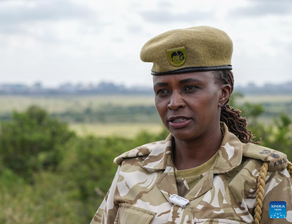 Millicent Kathambi, warden of Nairobi National Park, speaks during an interview in Nairobi National Park, Kenya, on May 16, 2025. Constructed by China Road and Bridge Corporation (CRBC), the Nairobi-Malaba Standard Gauge Railway is a key component of the Kenya Standard Gauge Railway Project with a total length of about 960 km upon completion. According to Yu Fujia, assistant general manager of CRBC's Kenya operations, the Nairobi-Malaba railway incorporates 14 ground-level wildlife crossings, 150 underground culverts, and six km of noise-dampening overpasses with light-permeable barriers, forming a three-dimensional corridor for animals. (Xinhua/Li Yahui)