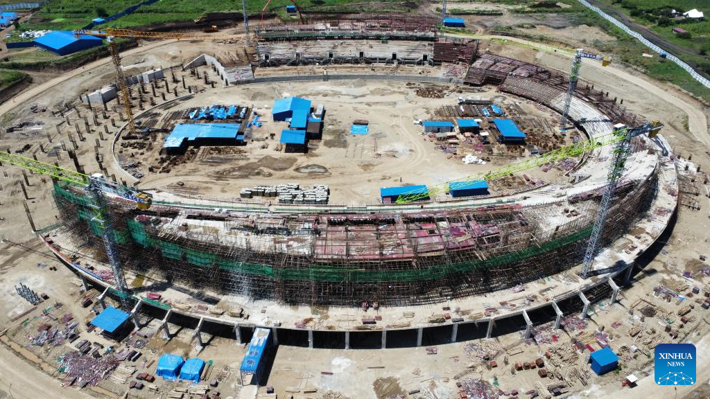An aerial drone photo taken on April 28, 2025 shows a comprehensive sports stadium under construction by China Railway Construction Engineering Group (CRCEG) in Arusha, Tanzania. Set to become one of the venues for the 2027 Africa Cup of Nations (AFCON), the stadium is more than just a sports facility; it is a symbol of Tanzania's commitment to hosting major international events. (CRCEG/Handout via Xinhua)