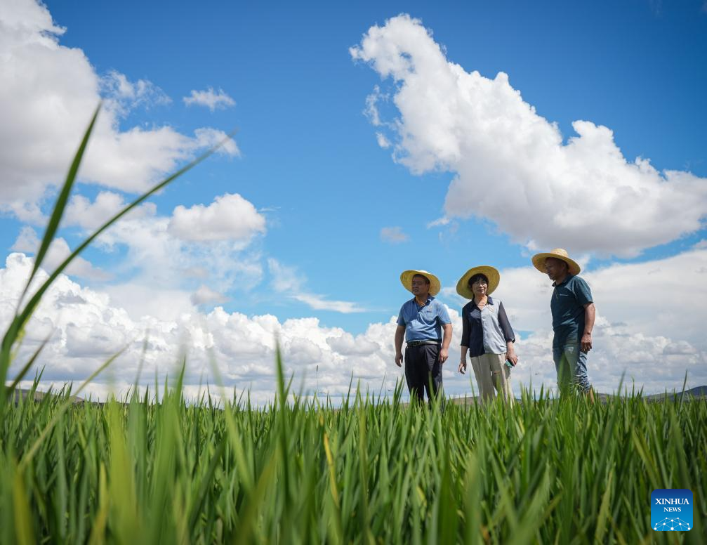 Chinese agricultural experts view the growth of hybrid rice in Mahitsy, Madagascar, on March 25, 2025.(Xinhua/Li Yahui)