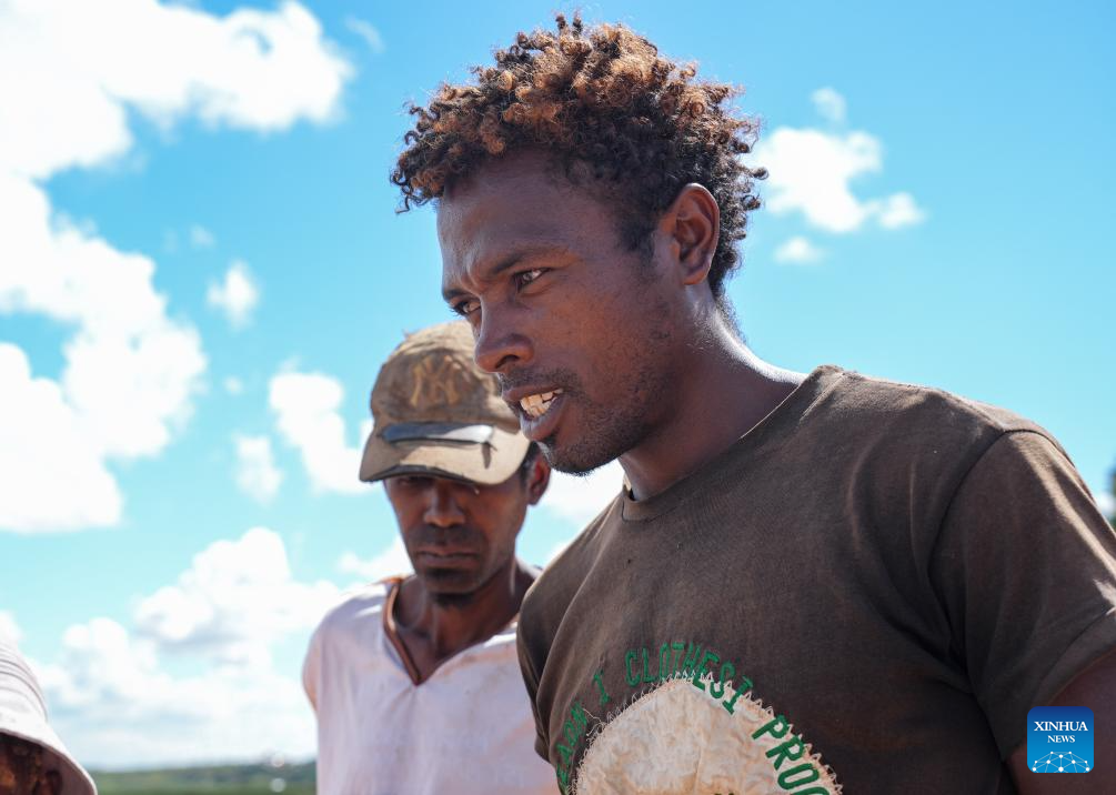 Femosoa Rakatondratsara, a local farmer, speaks during an interview with Xinhua in Mahitsy, Madagascar, on March 25, 2025.(Xinhua/Li Yahui)