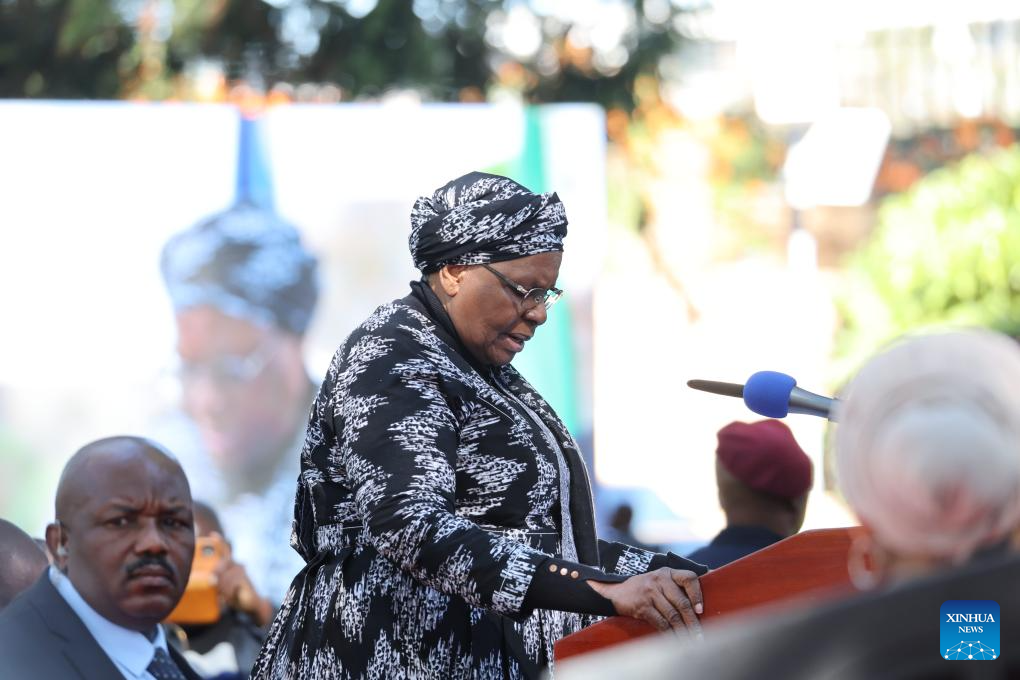 Namibian President Netumbo Nandi-Ndaitwah (C) speaks at a commemoration event marking the Genocide Remembrance Day in Windhoek, Namibia, on May 28, 2025. Namibia on Wednesday marked its first-ever Genocide Remembrance Day to honor more than 100,000 Ovaherero and Nama people who were systematically killed by German colonial forces between 1904 and 1908. (Photo by Sharon Kavhu/Xinhua)