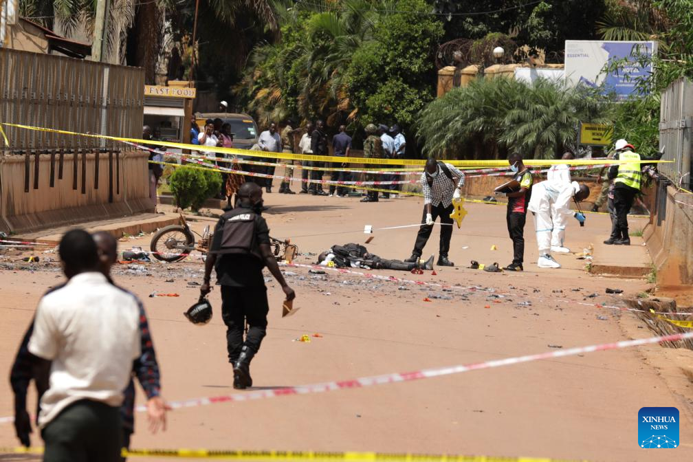 This photo taken on June 3, 2025 shows the scene of a bomb explosion that occurred earlier near a church in Munyonyo, a suburb of Kampala, Uganda. The Ugandan military on Tuesday said it had killed two suspected terrorists who were carrying an explosive device in the capital city. (Photo by Hajarah Nalwadda/Xinhua)