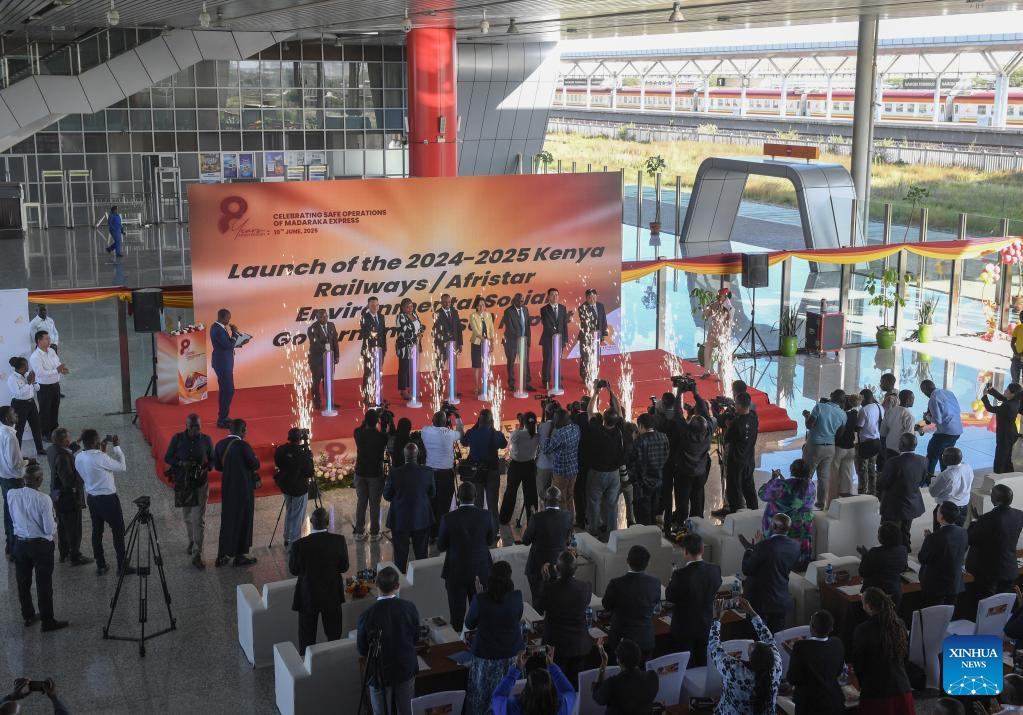 A celebration to mark eight years of seamless operation of the Chinese-built Mombasa-Nairobi Standard Gauge Railway (SGR) in Kenya is held in Nairobi, Kenya, June 10, 2025. (Xinhua/Li Yahui)