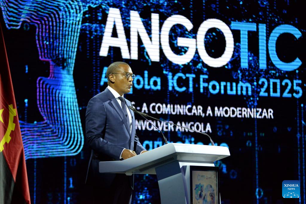 Jose de Lima Massano, minister of state for economic coordination of Angola, delivers a speech at the Angola International Forum on Information and Communication Technologies 2025 in Luanda, Angola, June 12, 2025. The fifth edition of the Angola International Forum on Information and Communication Technologies kicked off on Thursday in Luanda, the capital, under the theme: "50 years communicating, modernizing and developing Angola." (Photo by Julio Kikebu/Xinhua)