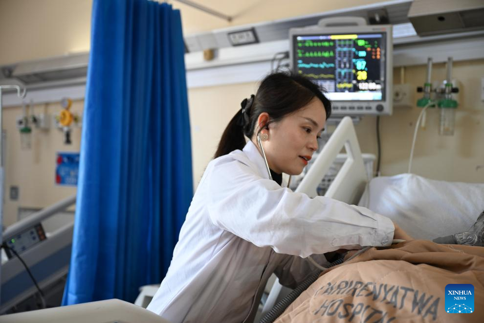 A doctor from the 22nd batch of the Chinese medical team to Zimbabwe examines a patient at a local hospital in Harare, Zimbabwe, June 10, 2025. (Xinhua/Xu Zheng)