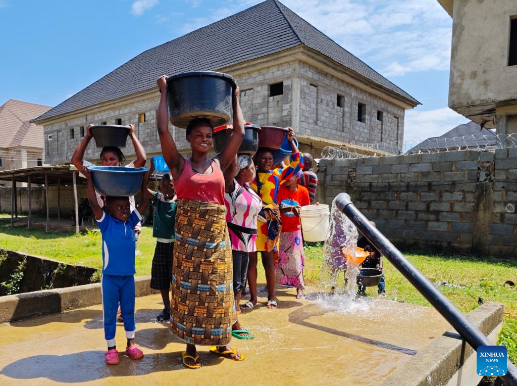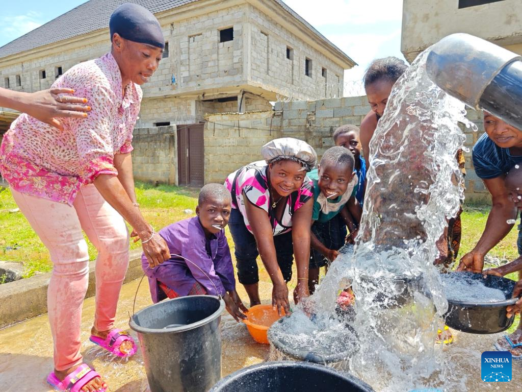 This file photo taken on Oct. 9, 2024 shows local residents collecting water during the trial run of the Greater Abuja Water Supply Network project in Abuja, Nigeria. Nigerian President Bola Tinubu has commissioned a China-assisted water supply project in Abuja, the national capital, and pledged commitment to sustainable infrastructure that directly improves citizens' lives.