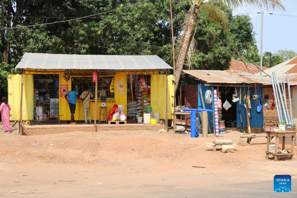 This photo taken on June 15, 2025 shows shops alongside a highway constructed by a Chinese company in Safim, Guinea-Bissau. The China-funded highway, which links the capital Bissau to its suburb of Safim, inaugurated on June 16.