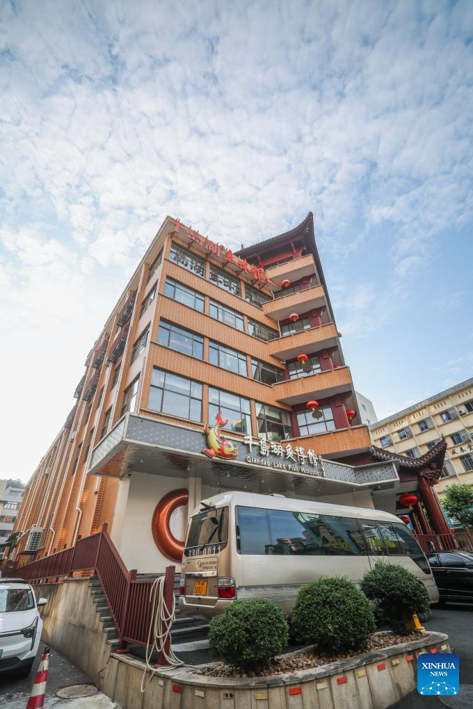People visit the Qiandao Lake Fish Museum in Chun'an County, east China's Zhejiang Province, June 3, 2025. Chun'an, located in east China's Zhejiang Province, is renowned for its water system and outstanding natural environment. As a national-level ecological county, it serves as a model for ecological protection and construction. (Xinhua/Xu Yu)