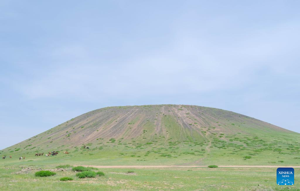 This photo taken on June 17, 2025 shows a volcano of the Ulanhada volcano cluster, Qahar Right Wing Rear Banner of Ulanqab, north China's Inner Mongolia Autonomous Region. The Ulanhada volcano cluster boasts special geological landscapes such as volcanoes and lava landform. With summer's arrival, it has entered the peak tourist season. (Xinhua/Ma Jinrui)