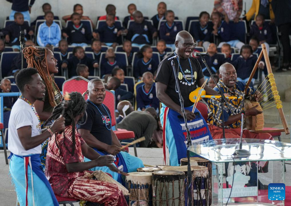 Kenyan artists perform African music during a cultural event at Kenyatta University in Nairobi, Kenya, on June 18, 2025. (Xinhua/Li Yahui)