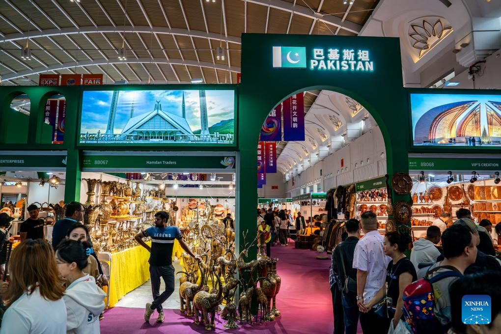 People visit the exhibition area of Pakistan at the South Asia Pavilion during the 9th China-South Asia Expo in Kunming, southwest China's Yunnan Province, June 21, 2025.
