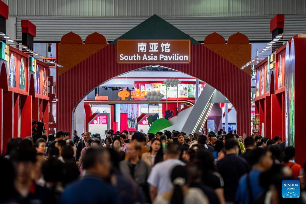 The six-day event, opened on Thursday in Kunming, features 16 exhibition halls. Nearly 500 enterprises from eight South Asian countries are participating in the event. (Xinhua/Hu Chao)