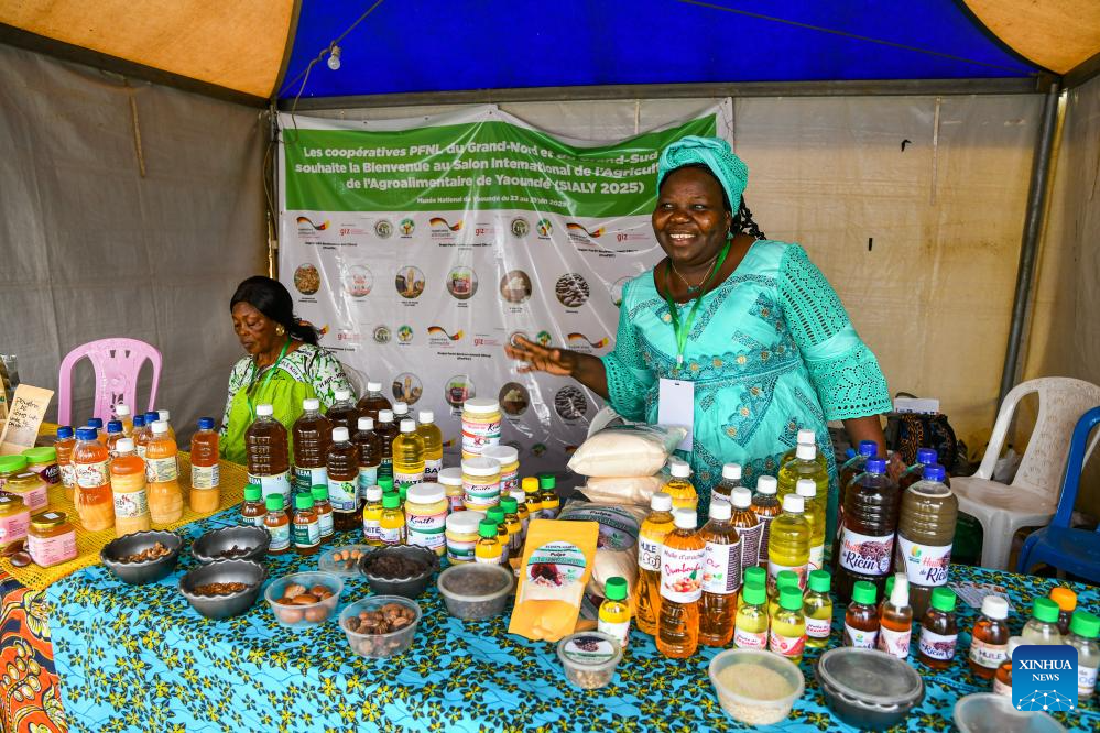 Exhibitors are pictured during the 9th edition of the Yaounde International Agribusiness Exhibition (SIALY) in Yaounde, Cameroon, June 25, 2025. (Xinhua/Kepseu)