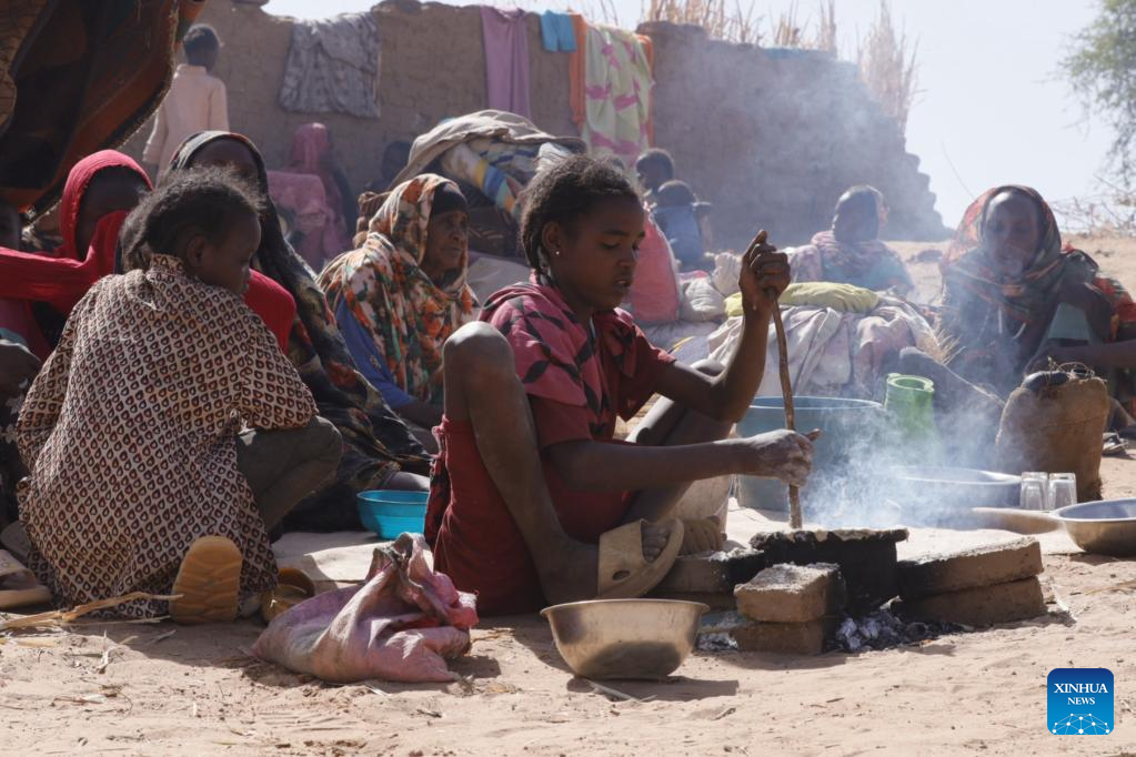 A girl prepares food at a displacement camp in El Fasher, North Darfur region, Sudan, on July 9, 2025. The United Nations Children's Fund (UNICEF) said Friday that the number of children suffering from severe acute malnutrition (SAM) in Sudan's North Darfur region has doubled as a result of the country's ongoing military conflict. (UNICEF/Handout via Xinhua)