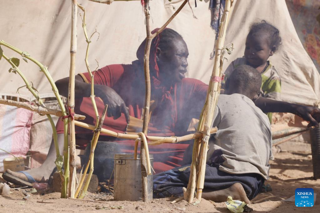 A woman prepares food for children at a displacement camp in El Fasher, North Darfur region, Sudan, on July 9, 2025. The United Nations Children's Fund (UNICEF) said Friday that the number of children suffering from severe acute malnutrition (SAM) in Sudan's North Darfur region has doubled as a result of the country's ongoing military conflict. (UNICEF/Handout via Xinhua)