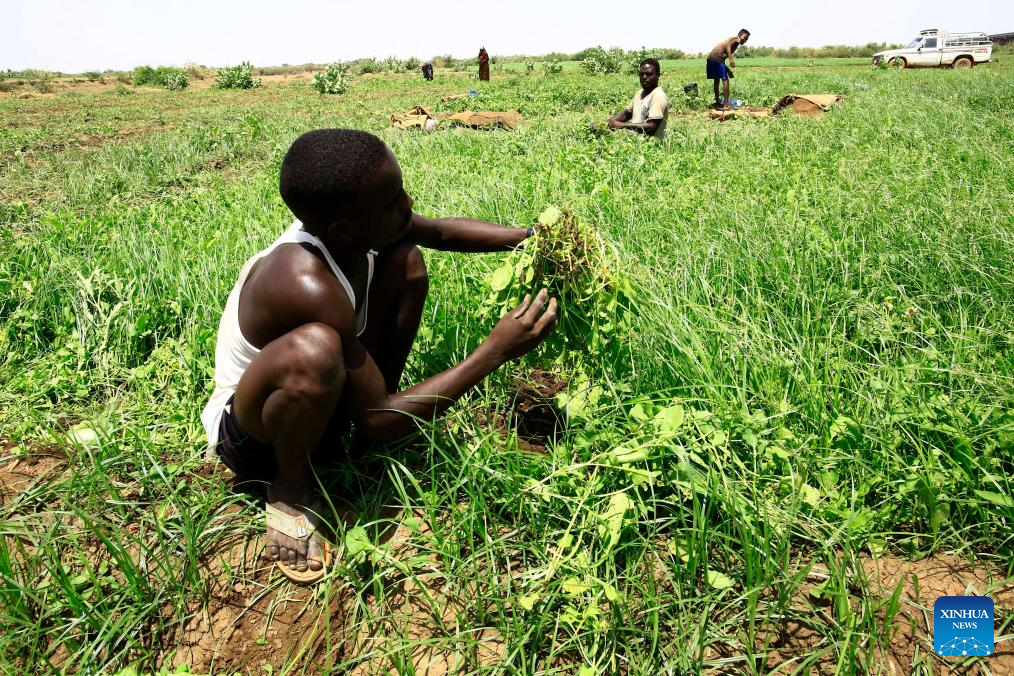 Farmers harvest arugula at Al-Manara neighborhood in Omdurman, north of the Sudanese capital Khartoum, Sudan on July 19, 2025. (Photo by Mohamed Khidir/Xinhua)