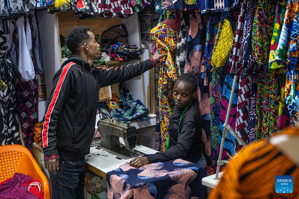 Vendors sell clothes at Eastleigh in Nairobi, Kenya, on July 23, 2025. Eastleigh, located in the eastern part of Nairobi, is a vibrant and densely populated commercial hub. (Xinhua/Wang Guansen)