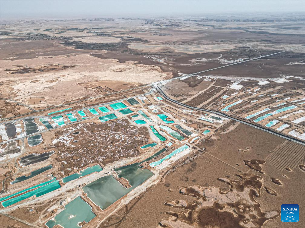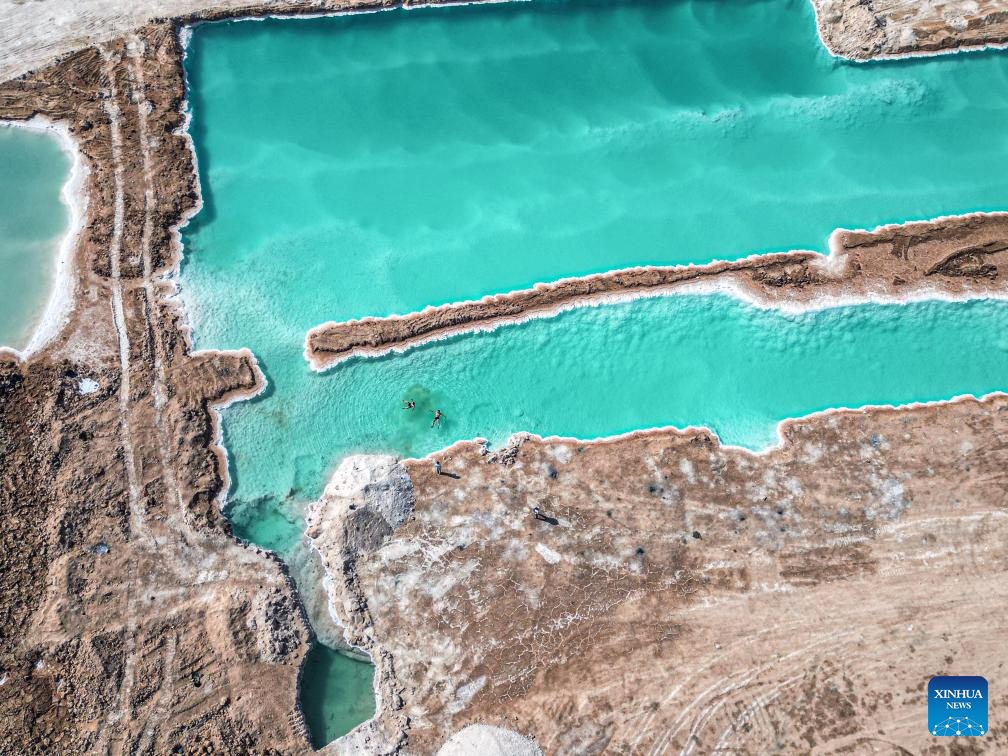 An aerial drone photo taken on July 28, 2025 shows salt lakes at Siwa Oasis in Matrouh Governorate, Egypt. Siwa Oasis lies in Egypt's western desert, some 800 kilometers from Cairo. There are many natural salt lakes on which people can float with no effort due to high salt concentration. (Xinhua/Ahmed Gomaa)