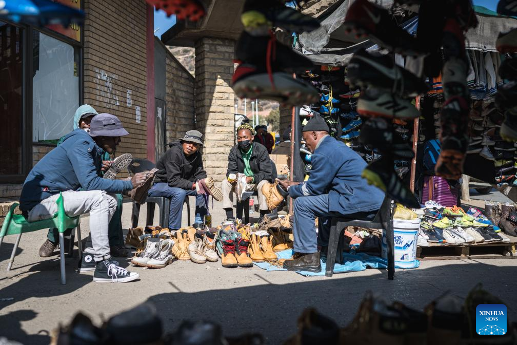 Vendors clean shoes on a street of Maseru, Lesotho on July 31, 2025. Lesotho is renowned for its traditional Basotho culture, mountainous landscapes, and distinctive hat-shaped architecture. (Xinhua/Wang Guansen)