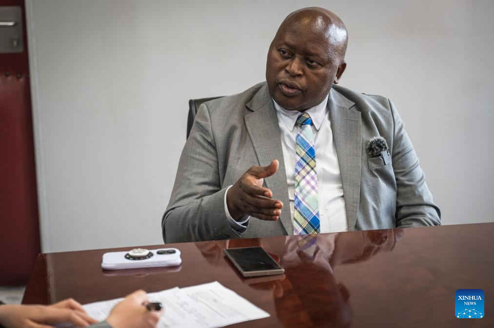 Mokhethi Shelile, Lesotho's minister of trade, industry, business development and tourism, speaks during an exclusive interview with Xinhua in Maseru, Lesotho, July 29, 2025. (Xinhua/Wang Guansen)