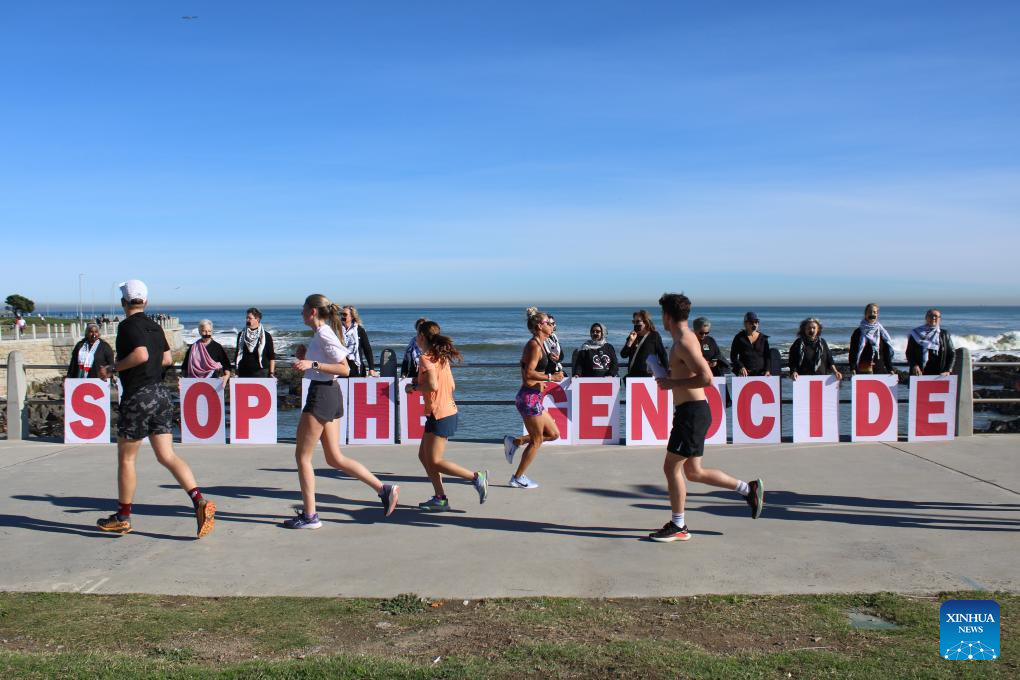 CAPE TOWN, Aug. 2 (Xinhua) -- A group of women under the banner of Mothers4Gaza held a silent protest on Saturday in Cape Town, South Africa's legislative capital, to denounce what they described as state-sanctioned starvation and genocide in Gaza.
