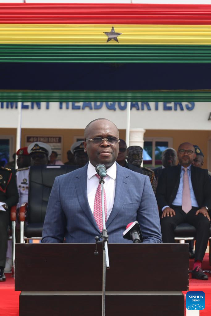 This file photo taken on Feb. 26, 2025 shows Ghanaian Minister of Defense Edward Kofi Omane Boamah. The Ghanaian government has confirmed that eight people, including two senior ministers, were killed in a military helicopter crash on Wednesday.