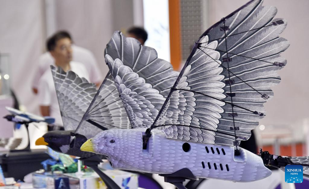 Simulated birds are exhibited during the 2025 World Robot Conference (WRC) in Beijing, capital of China, Aug. 8, 2025. The 2025 WRC that kicked off on Friday in Beijing unveiled future development trends of embodied intelligent robots, focusing on fields such as cognition, decision-making and safety.