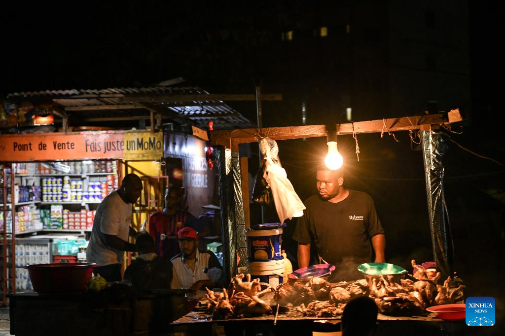 (250813) -- CONAKRY, Aug. 13, 2025 (Xinhua) -- Photo taken on April 26, 2025 shows a night market in Conakry, Guinea. (Xinhua/Han Xu)