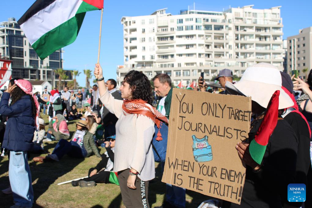 CAPE TOWN, Aug. 17 (Xinhua) -- South African journalists and media workers led a march in Sea Point, Cape Town, on Sunday, calling for greater protection for Palestinian journalists in Gaza and expressing solidarity with their slain colleagues.