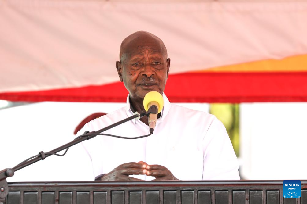 Ugandan President Yoweri Museveni speaks after the launch of new factories at Sino-Uganda Mbale Industrial Park in Mbale, Uganda, on Aug. 29, 2025. (Photo by Hajarah Nalwadda/Xinhua)