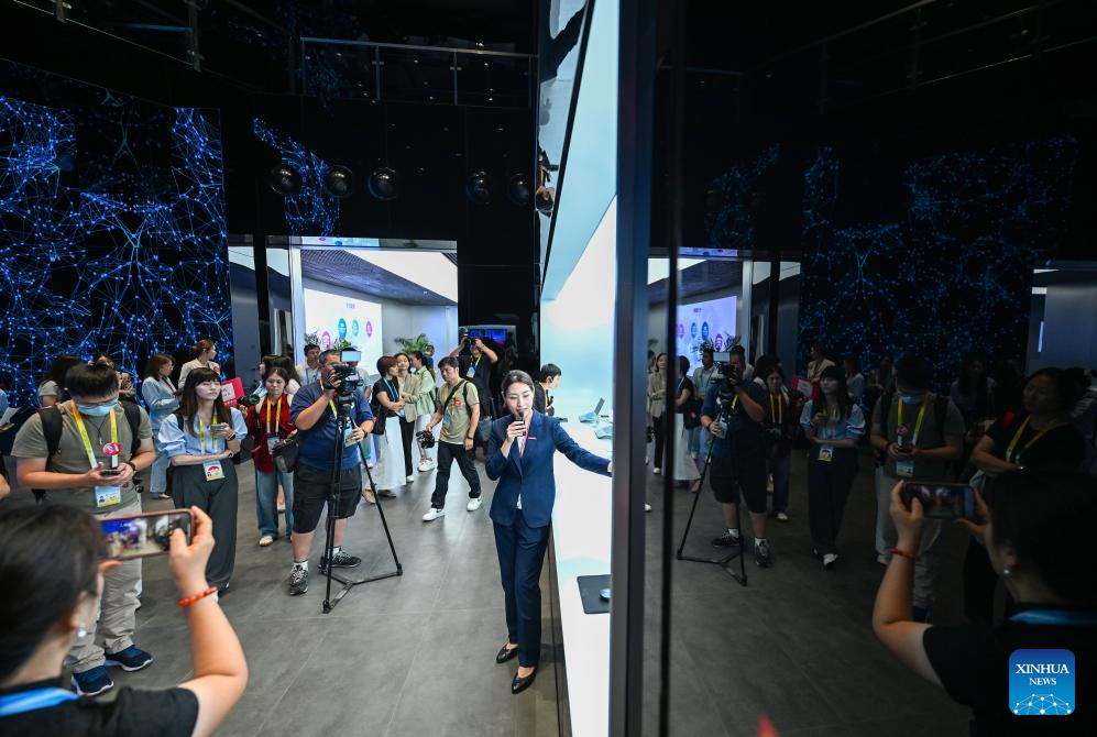 Journalists visit the Lenovo Tianjin Innovation Industrial Park in Tianjin, north China, on Aug. 29, 2025. Multiple city visiting events have been arranged in Tianjin by the media center of the Shanghai Cooperation Organization (SCO) Summit 2025 from Aug. 28 to Aug. 30, providing opportunities for Chinese and foreign journalists to learn about distinctive highlights in Tianjin's history and culture, its scientific and technological development, cultural and people-to-people exchanges, as well as other fields during their visits. (Xinhua/Zhao Zishuo)