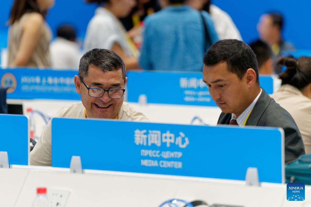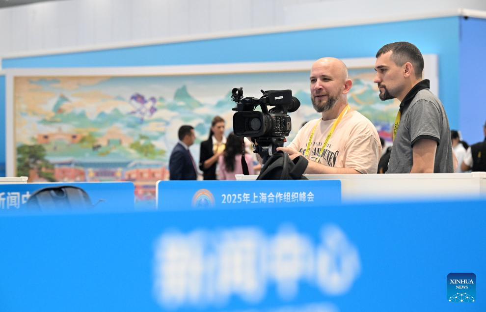 Foreign reporters work at the media center for the Shanghai Cooperation Organization (SCO) Summit 2025 in north China's Tianjin on Aug. 30, 2025. The upcoming Shanghai Cooperation Organization (SCO) Tianjin Summit is scheduled for Aug. 31 and Sept. 1 in north China's port city of Tianjin. (Xinhua/Zhang Xiaoyu)
