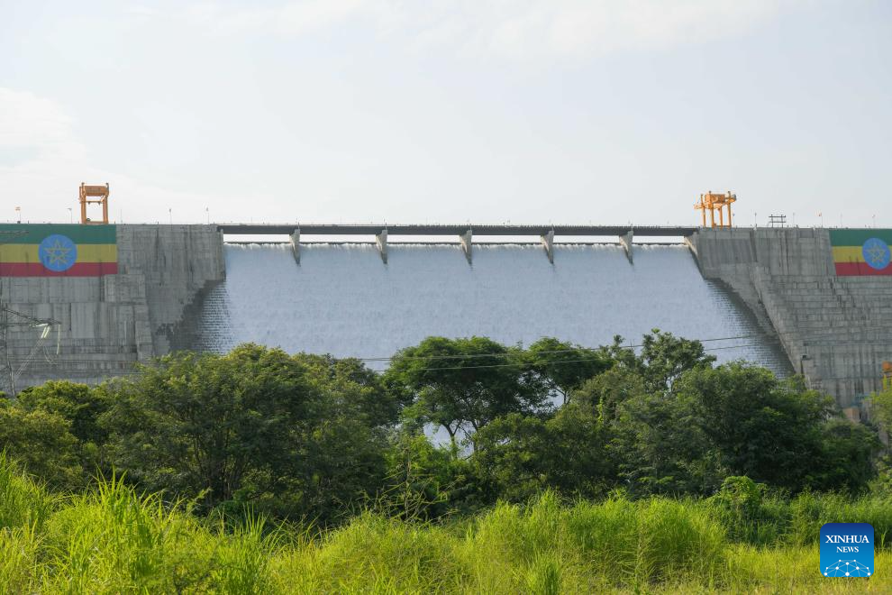 Photo taken on Sept. 9, 2025, shows the Grand Ethiopian Renaissance Dam (GERD) in the northwestern Benishangul-Gumuz region, Ethiopia. Ethiopia on Tuesday officially inaugurated the Grand Ethiopian Renaissance Dam (GERD), the largest hydropower project in Africa. (Xinhua/Michael Tewelde)