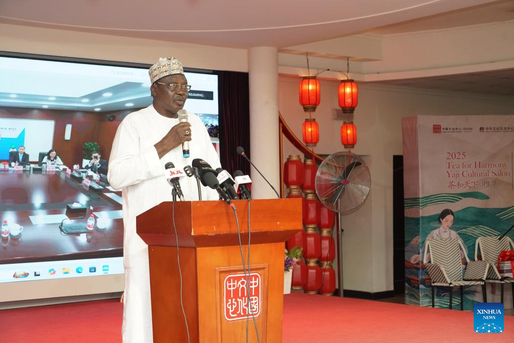 Chinese and Nigerian teachers jointly perform during the book donation ceremony at the China Cultural Center in Abuja, Nigeria, Sept. 11, 2025. (Nigeria China Cultural Center/Handout via Xinhua)