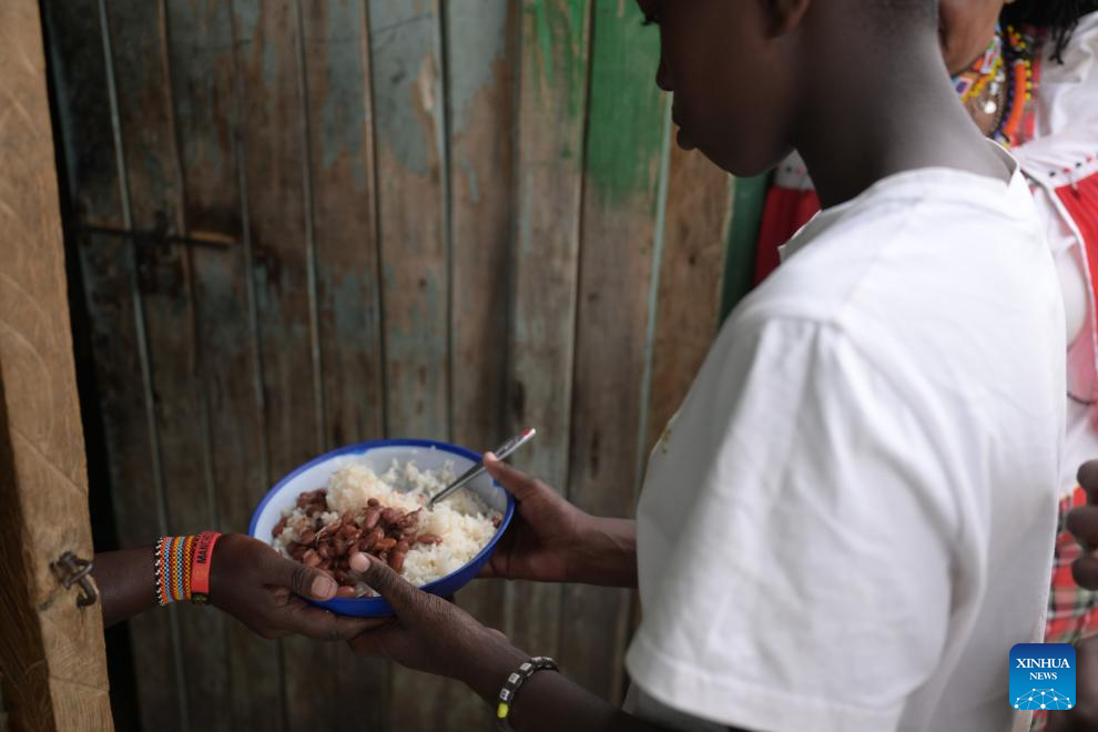 Girls have lunch at the Namunyak rescue center in Narok's Aitong Town, Kenya, Aug. 31, 2025. (Xinhua/Yang Guang)