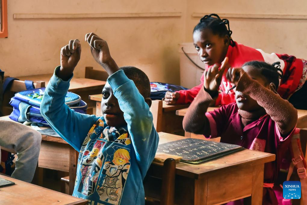 Students attend a sign language class at a special school for hearing-impaired children in Yaounde, Cameroon, Sept. 22, 2025.