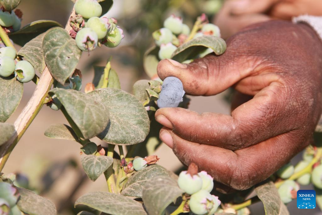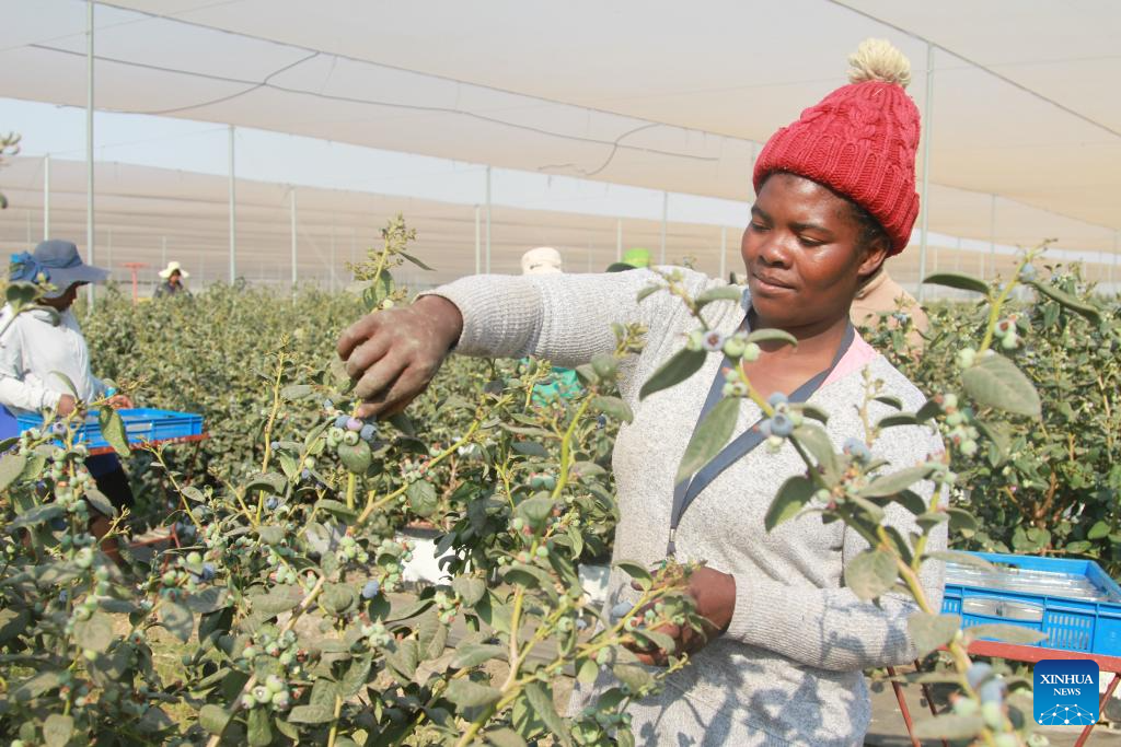 A farmer harvests blueberries in Mashonaland West Province, Zimbabwe, Sept. 18, 2025. (Photo by Tafara Mugwara/Xinhua)