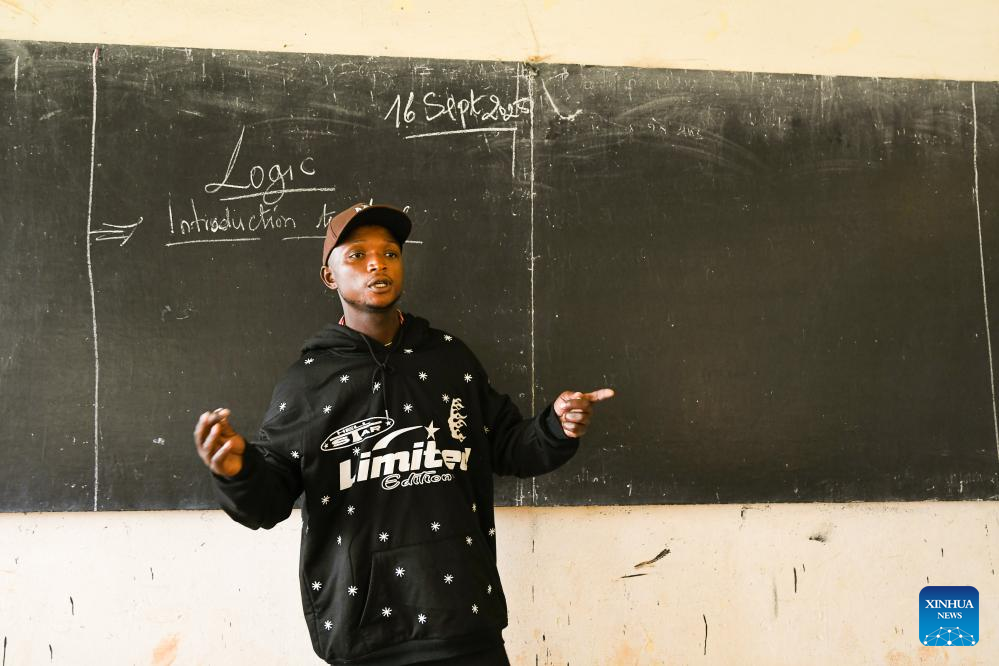 Ateasong Beltus Tajoah gives a philosophy lesson in a classroom in Dschang, West Region of Cameroon, on Sept. 16, 2025. (Xinhua/Kepseu)