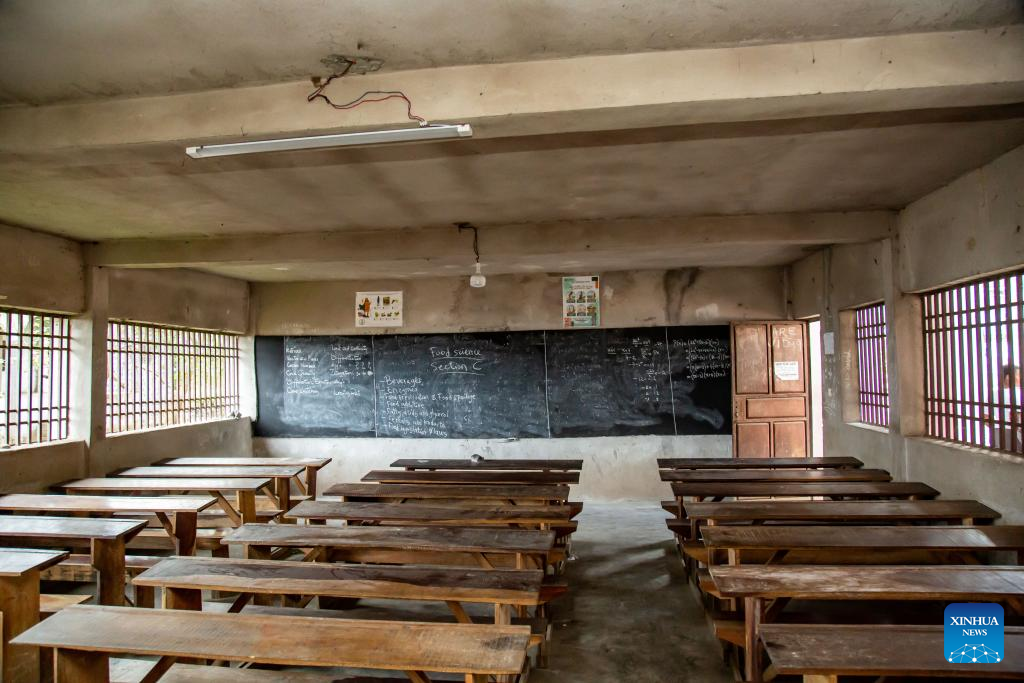 This photo taken on Sept. 24, 2025 shows an empty classroom in a secondary school in Buea, Southwest Region of Cameroon. (Photo by Muleng Timngum/Xinhua)