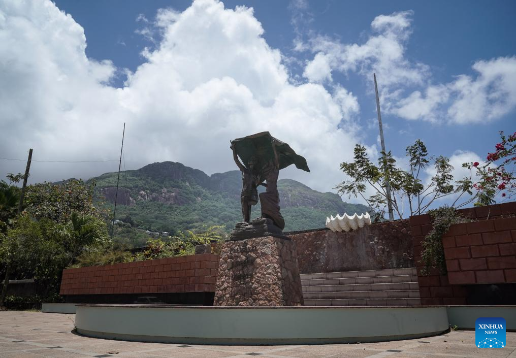 This photo taken on Sept. 29, 2025 shows the Unity Monument in Victoria, the capital of Seychelles. (Xinhua/Han Xu)