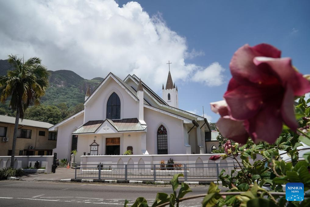 This photo taken on Sept. 29, 2025 shows a church in Victoria, the capital of Seychelles. (Xinhua/Han Xu)