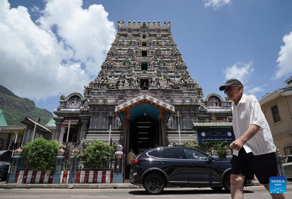 This photo taken on Sept. 29, 2025 shows a Hindu temple in Victoria, the capital of Seychelles. (Xinhua/Han Xu)