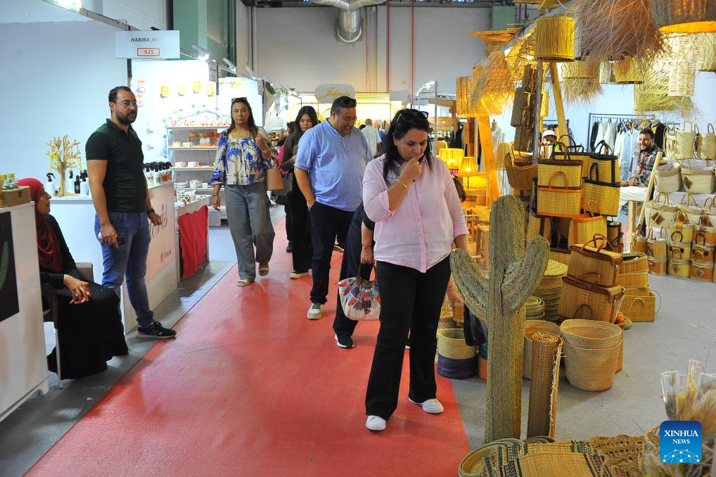 People visit a handicrafts fair in Tunis, Tunisia, Oct. 8, 2025. The second Tunisian Handicrafts Fair is held here from Oct. 6 to 12, with over 150 handicraft vendors participating. (Photo by Adel Ezzine/Xinhua)