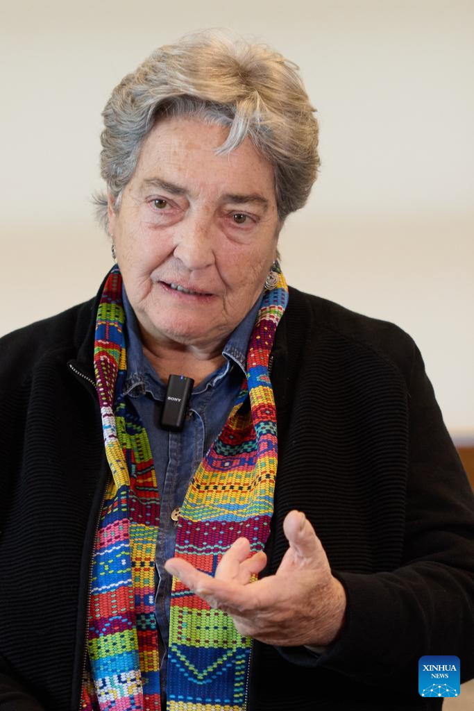 Uruguayan teacher and journalist Lucy Garrido receives an interview with Xinhua in Montevideo, Uruguay, Sept. 25, 2025. (Xinhua/Meng Dingbo)