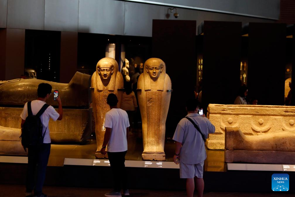 Photo taken on Oct. 14, 2025 shows exhibits at the Grand Egyptian Museum in Giza, Egypt. Egypt's Grand Egyptian Museum (GEM) is temporarily closed to the public from Oct. 15 to Nov. 3 in preparation for its official opening, scheduled for early November, according to an announcement published Monday on the museum's official website. (Xinhua/Ahmed Gomaa)