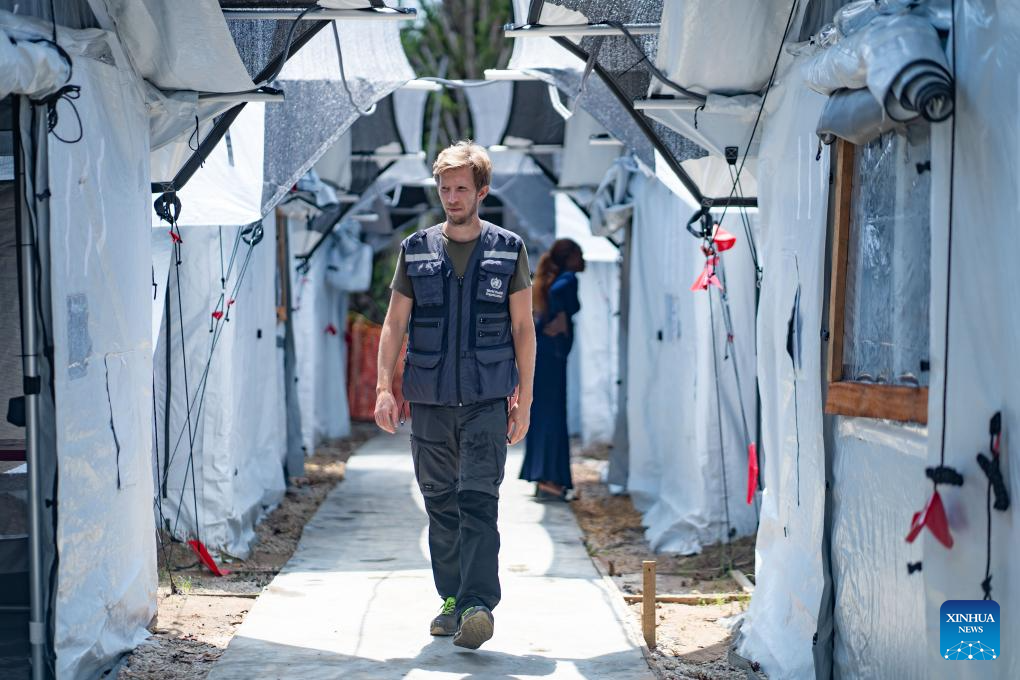 A staff member of the World Health Organization (WHO) walks through an Ebola treatment center in the Bulape health zone, the Democratic Republic of the Congo (DRC), Oct. 16, 2025. The World Health Organization (WHO) said Sunday that health authorities could declare the end of the current Ebola outbreak in the Democratic Republic of the Congo (DRC) in early December if no new cases are detected before then.(World Health Organization/Handout via Xinhua)