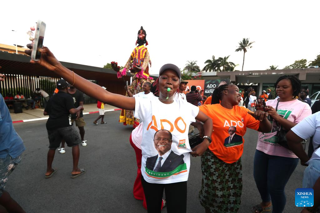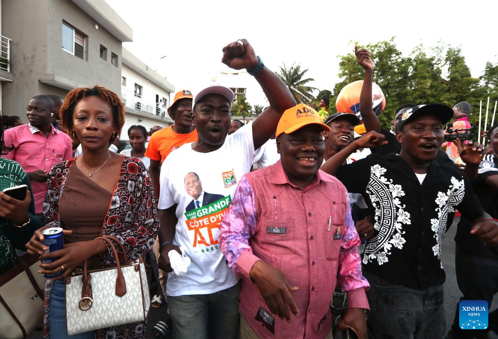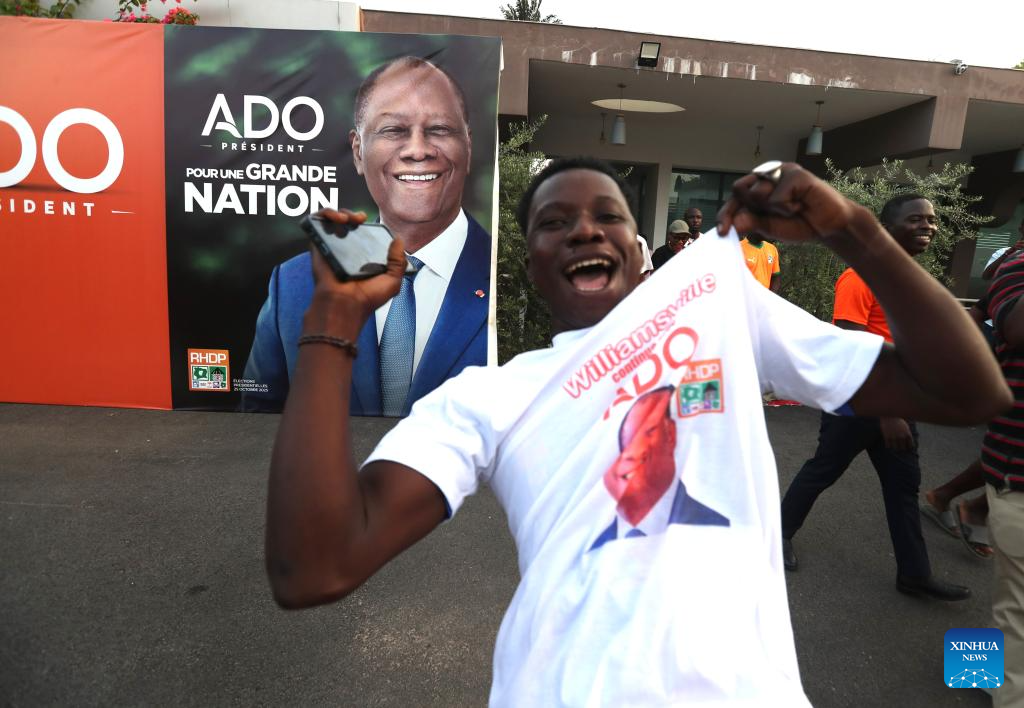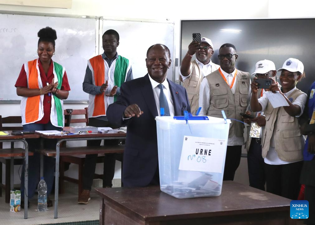 ABIDJAN, Oct. 27 (Xinhua) -- Cote d'Ivoire's incumbent President Alassane Ouattara, candidate of the Rally of Houphouetists for Democracy and Peace, has won a fourth term in the presidential election with 89.77 percent of the votes, according to provisional results released Monday by the country's Independent Electoral Commission (CEI).